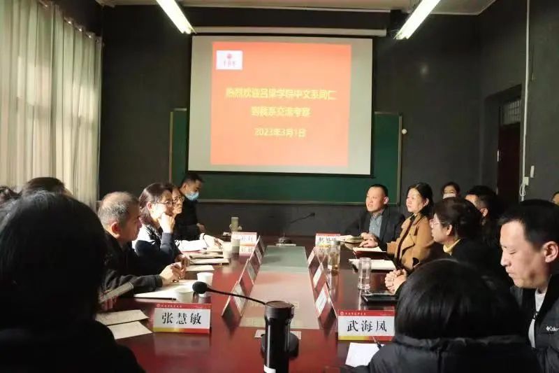 必威BETWAY党委书记崔惠军,主任王利,党委副书记李素萍,副主任郭旭魁、李刚、李拉利,教师代表张慧敏、武海凤参加了本次会议。必威BETWAY领导班子对吕梁学院必威BETWAY领导及教师的到访表示热烈欢迎,通过现场观看宣传片展示了我系的办学历史;张慧敏老师就汉语言文学师范认证工作的申请阶段、自评阶段、推进阶段进行了详细介绍。武海凤老师和张慧敏老师还对必威BETWAY新闻及汉语言文学教育相关问题进行了深入的交流。
