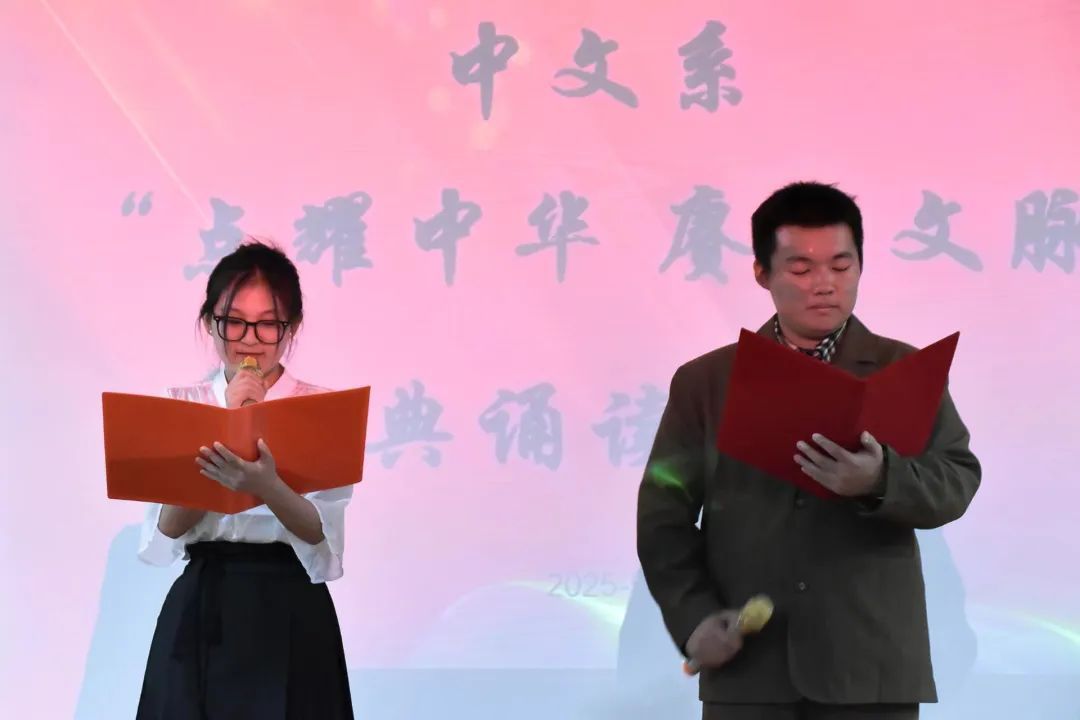 参赛选手们依次登台,以声为笔,以情为墨,将一篇篇经典佳作演绎得淋漓尽致。从饱含家国情怀的《祖国啊,我亲爱的祖国》,到意境优美的《春江花月夜》,再到气势磅礴的《沁园春·雪》,选手们用富有感染力的诵读,带领观众穿越千年时光,领略中华文化的博大精深。