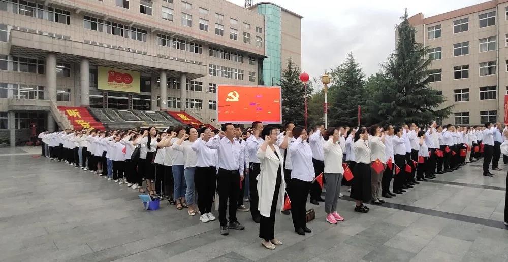 党旗熠熠照红心,誓言铮铮激壮志。升旗仪式结束后,党委书记郝勇东带领全体党员面向党旗庄严宣誓,致敬中国共产党成立一百周年。“我志愿加入中国共产党,拥护党的纲领,遵守党的章程,履行党员义务……”铿锵有力的誓词,一字一句,神圣而豪迈,全体党员面对鲜红的党旗,举手握拳,庄严宣誓,把对党的忠诚深深地融于血脉、铸入灵魂、刻进心田,永不磨灭,他们用铿锵有力的声音传递了共产党员不变的爱国情怀,表达了为党的事业奋斗终身的坚定信心。