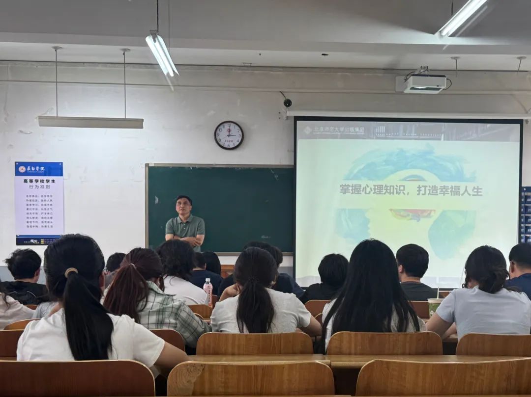 讲座伊始,孙志刚老师首先阐释了心理健康的基本概念,为同学们建立了清晰的认知基础。随后,他详细介绍了大学生心理健康的典型标志,引导同学们进行自我观照,关注自身心理状态。孙老师强调,心理健康是幸福人生的基石,良好的心理状态能够赋能个体积极应对生活中的挑战,从而更有效地收获幸福感。
