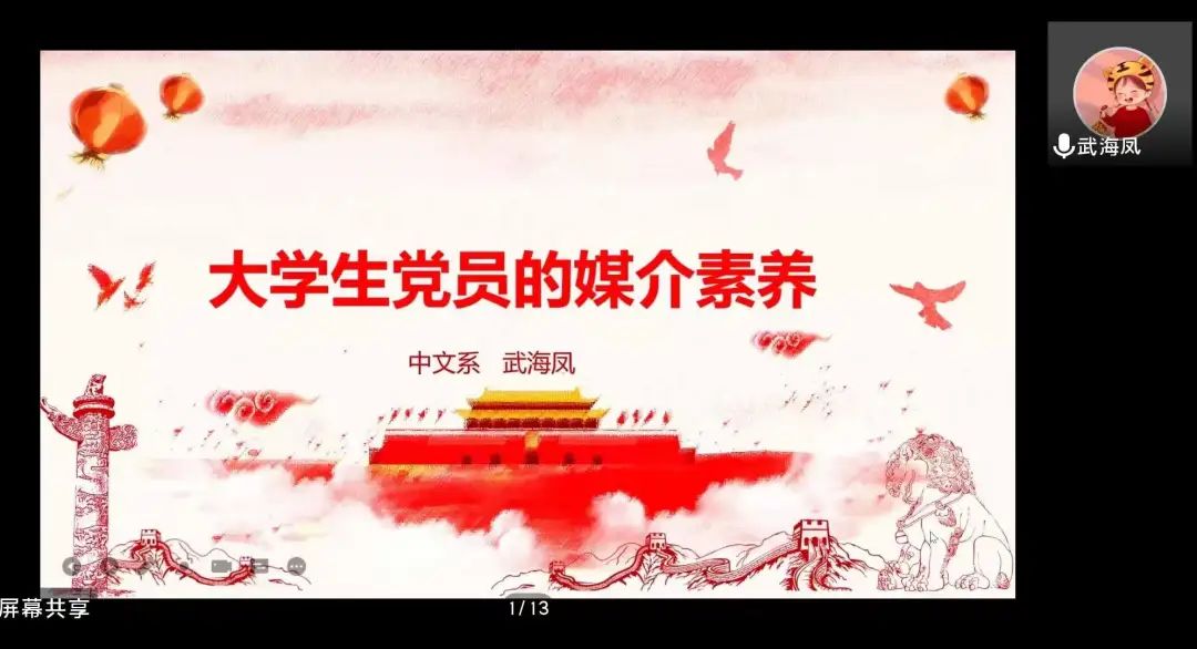 武海凤老师提到,随着现代社会快速发展,互联网全面普及,绝大多数人离不开媒介,在此环境下,就对当代大学生党员的媒介素养提出了更高的要求。