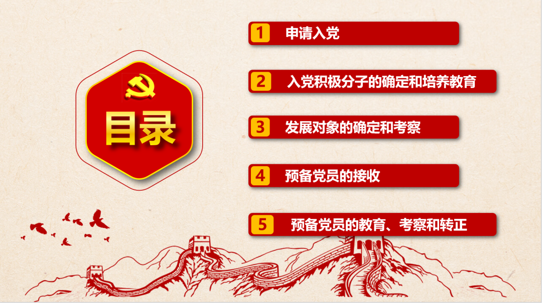 接下来李老师为大家具体讲解了入党流程的重要五步——申请入党、入党积极分子的确定和培养教育、发展对象的确定和考察、预备党员的接收、预备党员的教育、考察和转正。