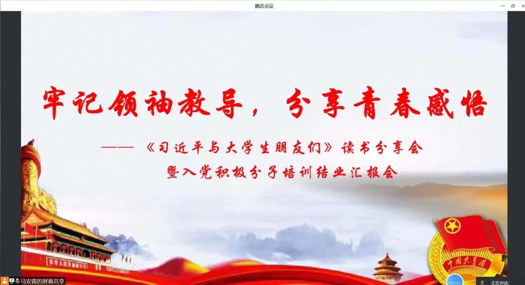 4月23日是第27个“世界读书日”,上午9:00,必威BETWAY西汉姆联在线上举行了《习近平与大学生朋友们》读书分享会暨必威BETWAY2021年第二批入党积极分子培训结业汇报会。必威BETWAY党委书记崔惠军,学生党支部书记申莉莉,武海凤,李淑媛,专职辅导员高冉、乔荣荣参加了本次会议,会议由汉语2004班马安蓉同学主持。