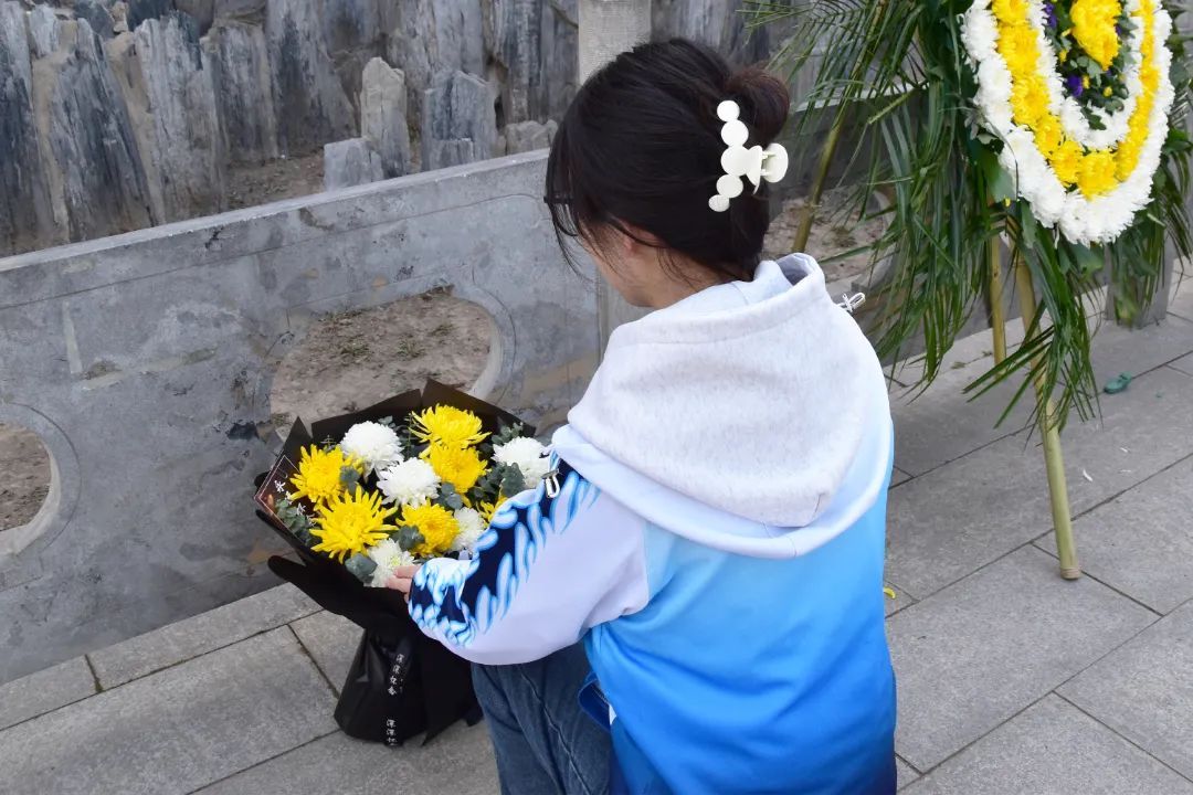 战地旧址庄严肃穆,祭扫活动也在这庄严的氛围中拉开序幕。学生代表手捧鲜花,步履庄重,向革命先烈敬献花束,致以深切的缅怀与崇高的敬意。
