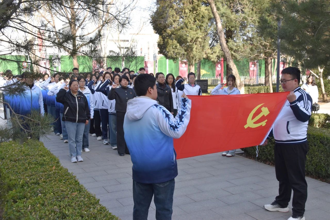 面对鲜红党旗,全体师生重温入党誓词,坚定了对党的忠诚、为共产主义事业奋斗终身的理想信念,彰显传承先烈精神、接续奋斗的决心。
