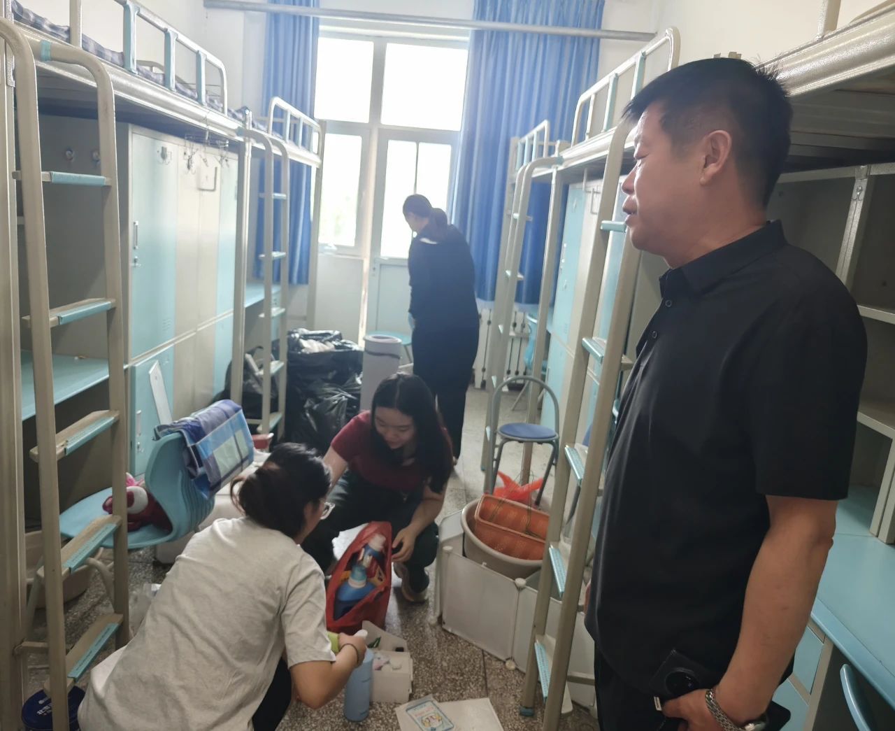 活动期间系党委书记崔惠军、团委书记申莉莉、专职组织员李淑媛走访学生宿舍,了解宿舍整理情况和学生离校需求。