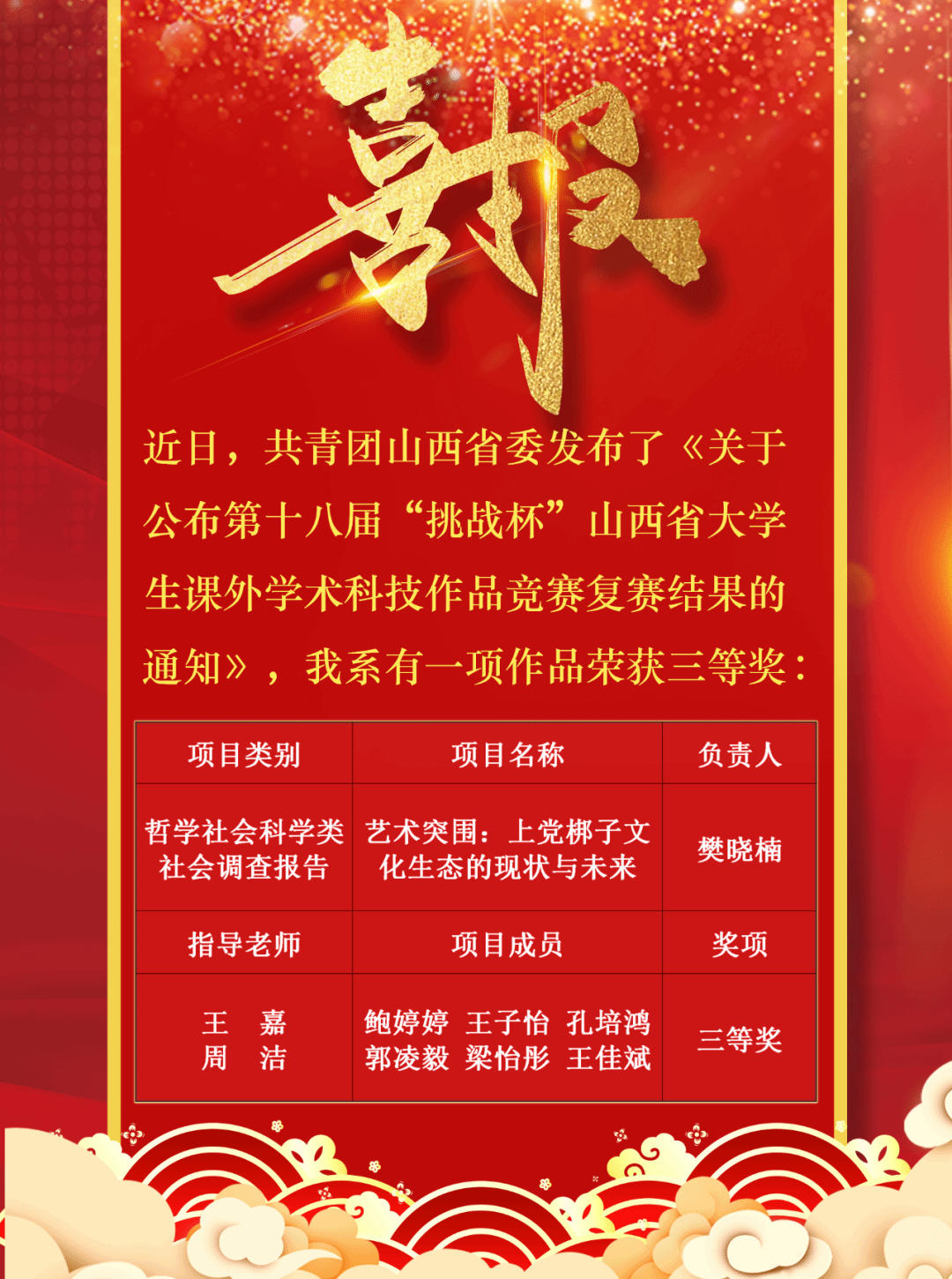 喜报| 我系学子在第十八届“挑战杯”山西省大学生课外学术科技作品竞赛中喜获佳绩