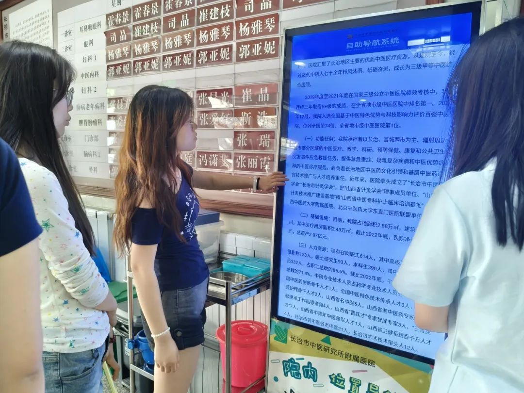 同学们进入中医药研究院后,先通过自助导航系统,了解到研究院的各个场所、基础设施、功能任务及人力资源等信息。