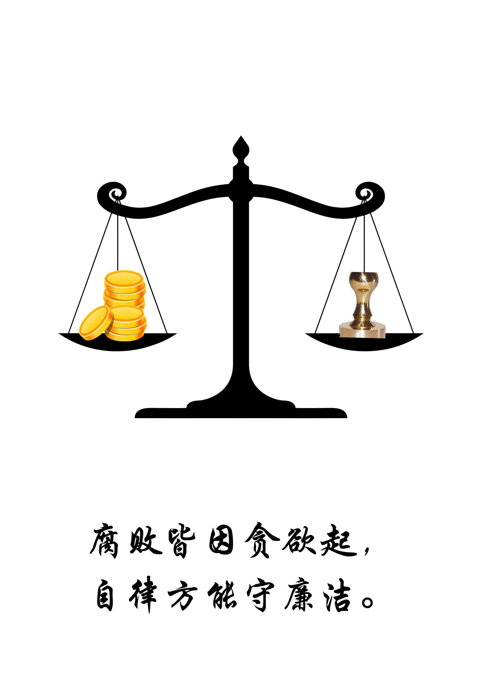 作品阐述:海报中的金币代表行污受贿,公章代表公职人员应正确行使自己的权利,而天平的倾斜取决于内心。