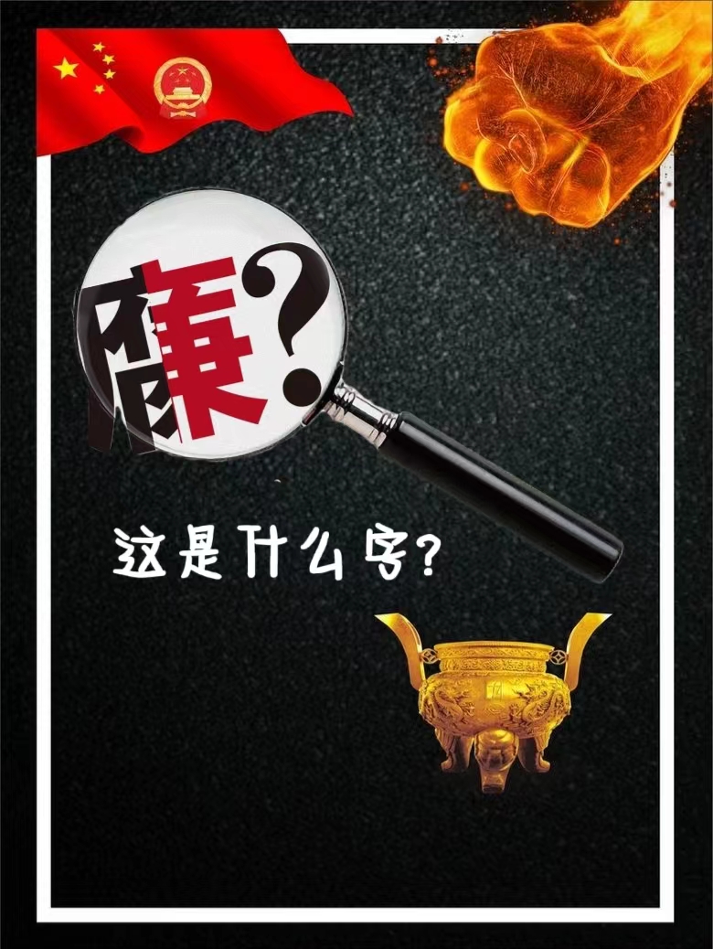 作品阐述:这幅海报围绕“清风廉韵”这个主题,画面中国旗、一个拳头,右下方还有一个鼎,中间有一个放大镜,告诉我们“廉”“腐”这两个字,反映出反腐斗争仍在进行当中,对贪污腐败势力零容忍、重拳出击,同时也让人们反思一下“腐”“廉”这两个字!