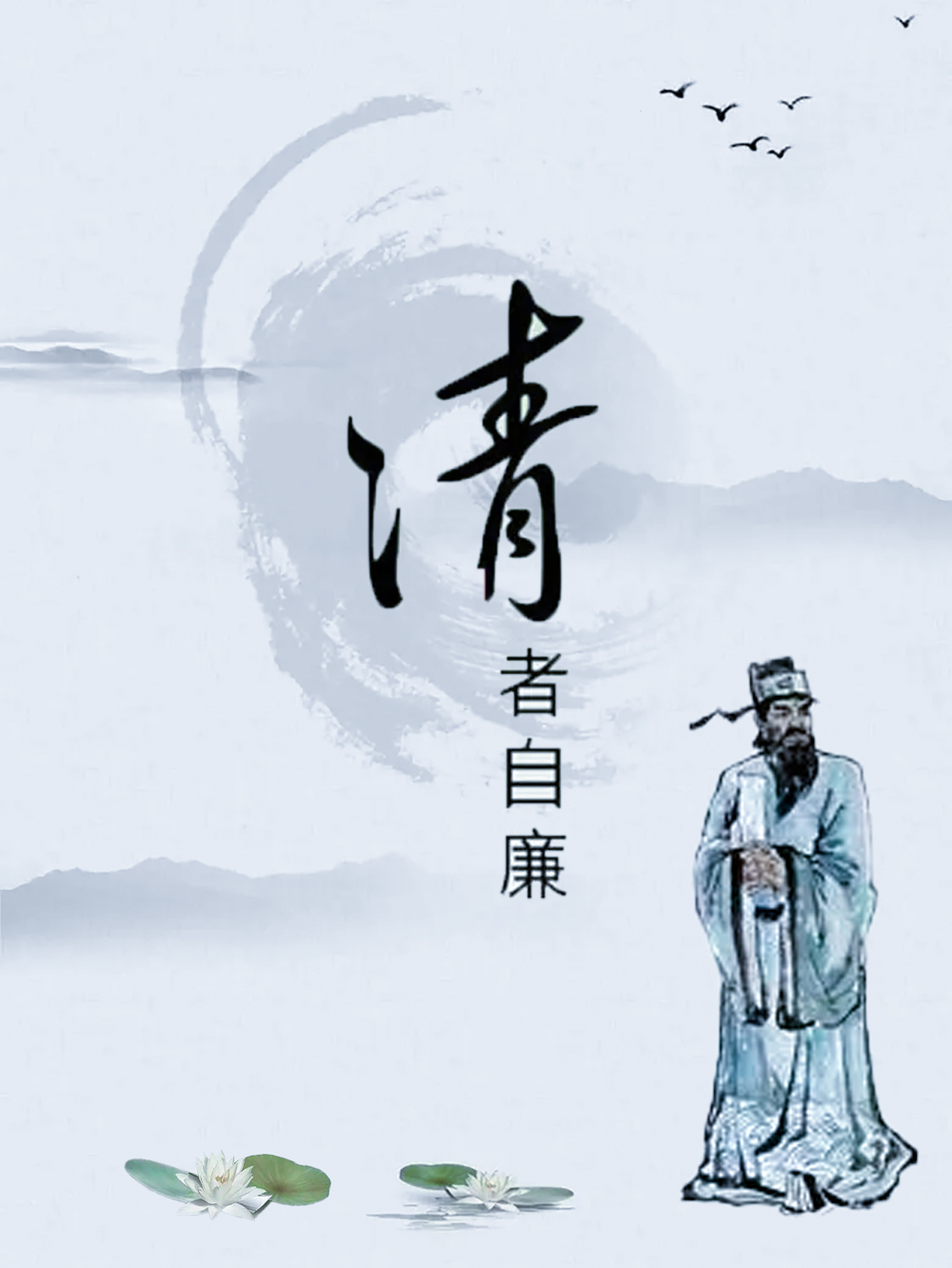 作品阐述:一位清官在为官生活中,一心为国为民,清正廉明,正如池中绽放的莲花一样,出淤泥而不染。