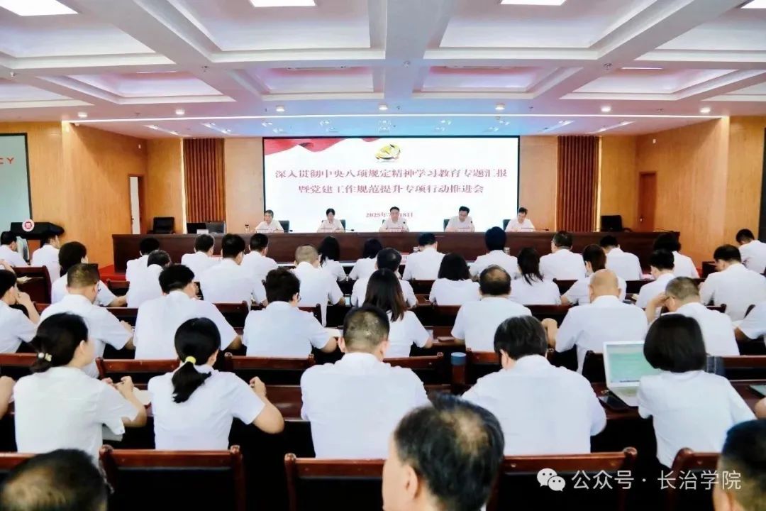7月18日,学校召开深入贯彻中央八项规定精神学习教育专题汇报暨党建工作规范提升专项行动推进会。校领导曹景川、史晓东、焦雨、王志军、武月明出席,副处级以上干部参加。会议由党委副书记史晓东主持。